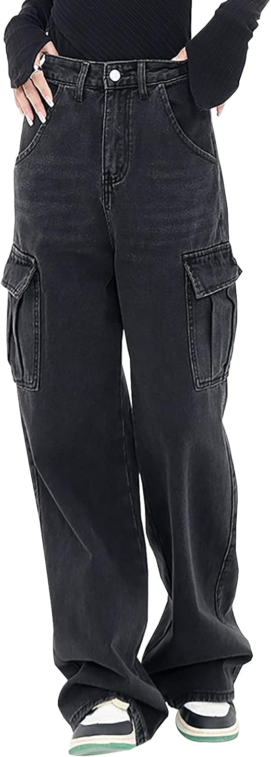 Women’s High Waisted Cargo Jeans Straight Wide Leg Stretch Baggy Jean Casual Loose Denim Cargo Pants Trousers
